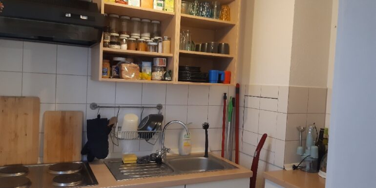 Die vorhandene Maßeinbauküche mit Backofen, 4 Platten-Kochfeld und dem Kühlschrank, sowie der Spiegel im Badezimmer und ein weißes Schränkchen im Bad und ein Regal im Keller können für eine sehr faire Ablöse von 250.-EUR von dem Vormieter übernommen werden.